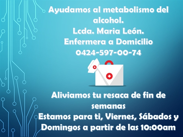 Licenciada en Enfermería. Egresada de la Universidad de Carabobo. 10 años de experiencia en Hemodiálisis. Cuidados de enfermería a domicilio. Administración de tratamiento, toma de via, muestras de laboratorio, curas de heridas, etc...